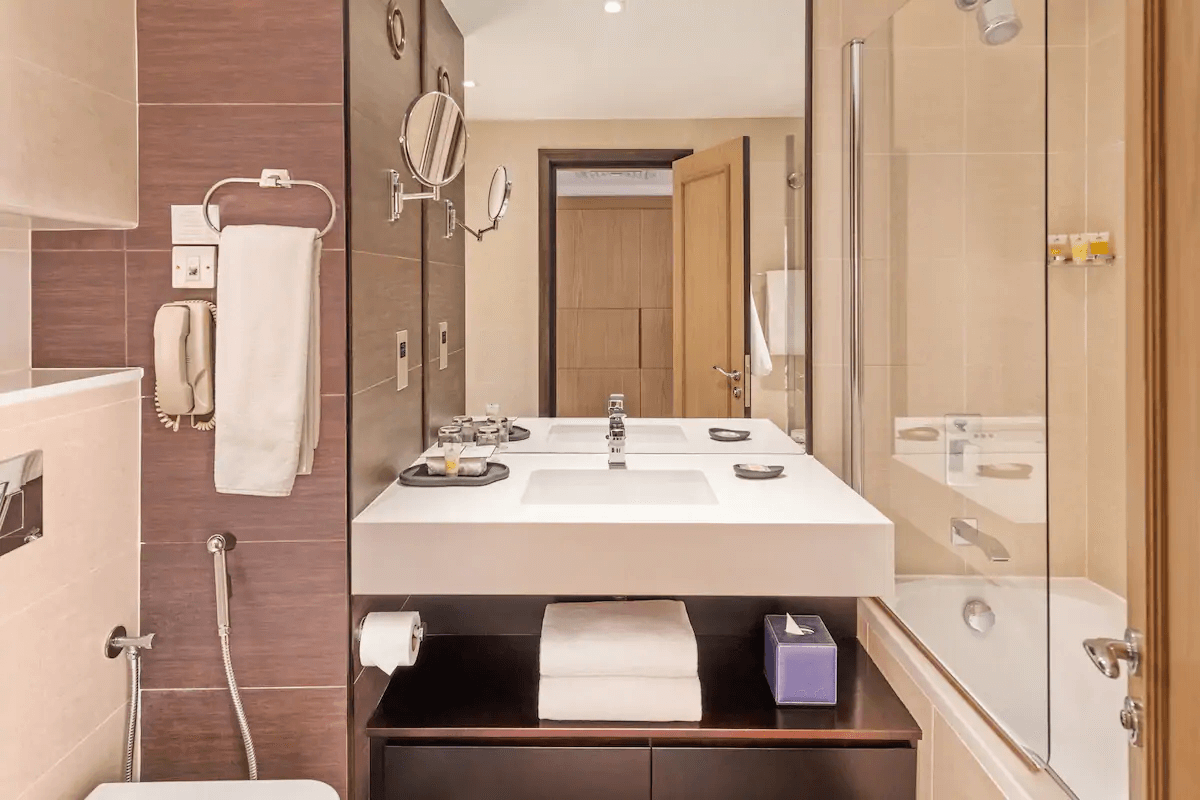 Our ultramodern glass bathroom is equipped with hairdryer, magnifying shaving and make up mirror as well as all the amenities you could possible need during your stay.